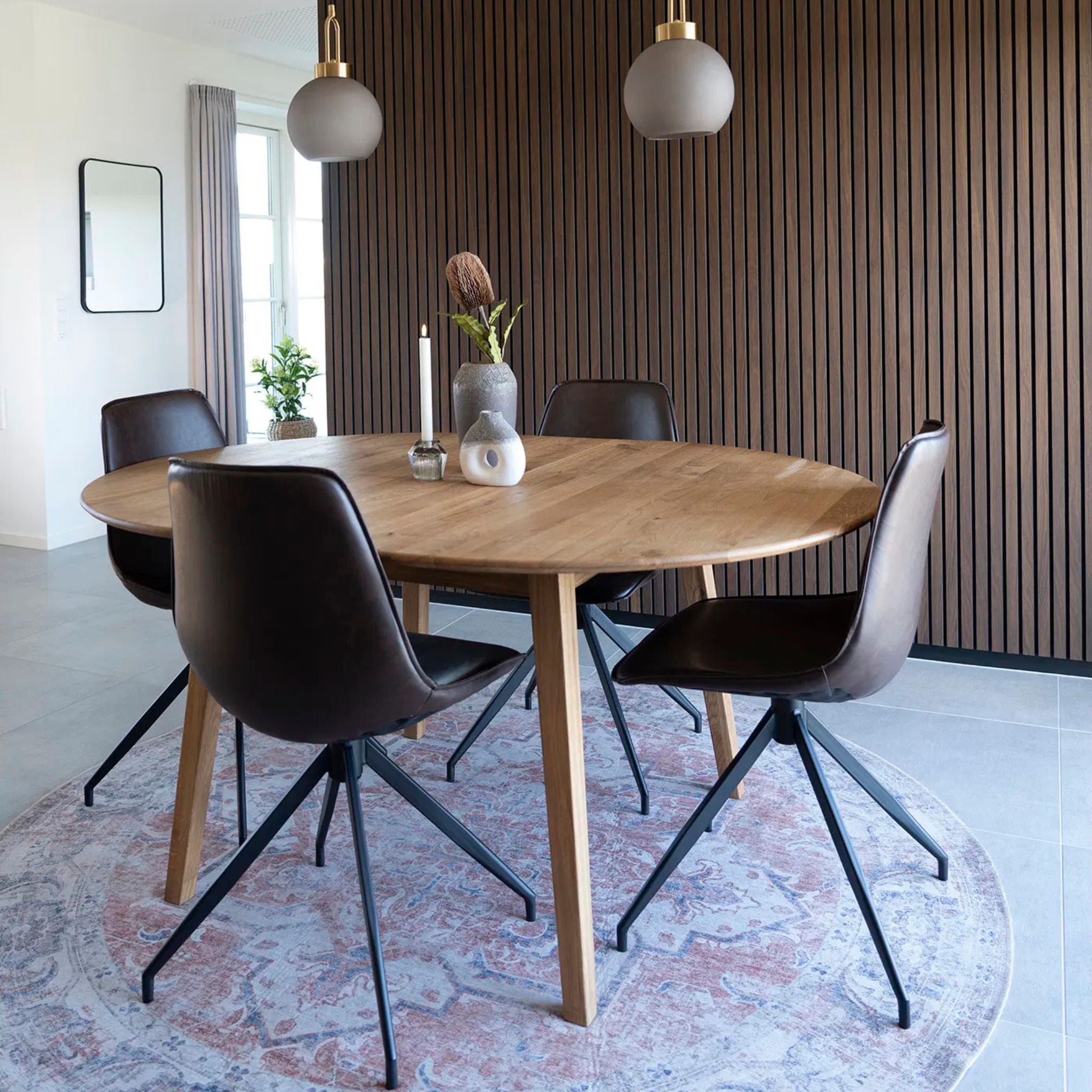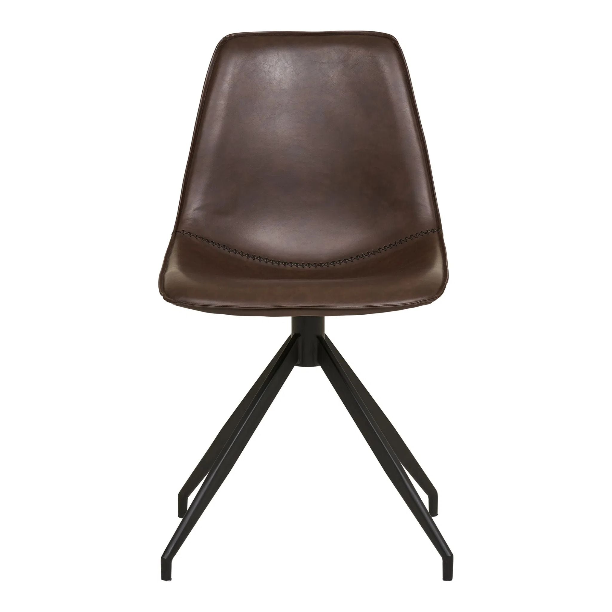 Stilren spisebordsstol i mørkebrun PU læder med sort drejefod. Komfortabel at sidde i og nem at bevæge, perfekt til både hverdag og gæster.