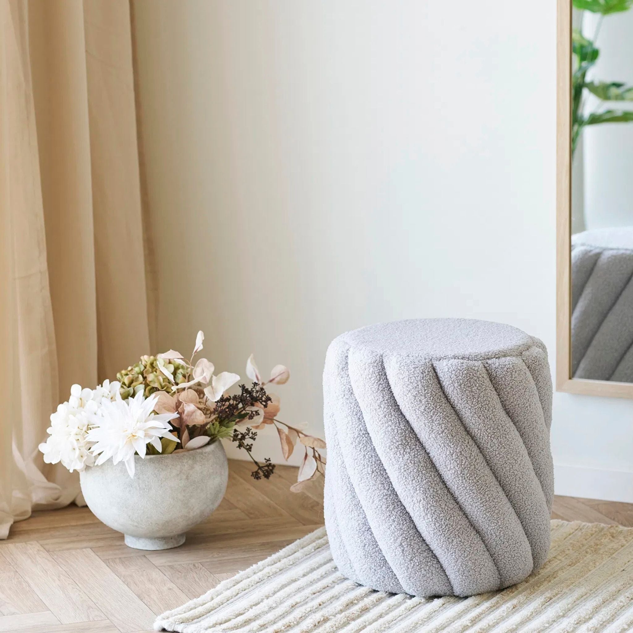 Denne Sana puf med twisted design skiller sig ud med sit elegante og moderne look. Den bløde, lækre overflade inviterer til afslapning, mens den karakteristiske form tilføjer rummet et strejf af luksus. Perfekt som både praktisk siddeplads og stilfuld dekoration, der straks løfter stemningen i enhver indretning.