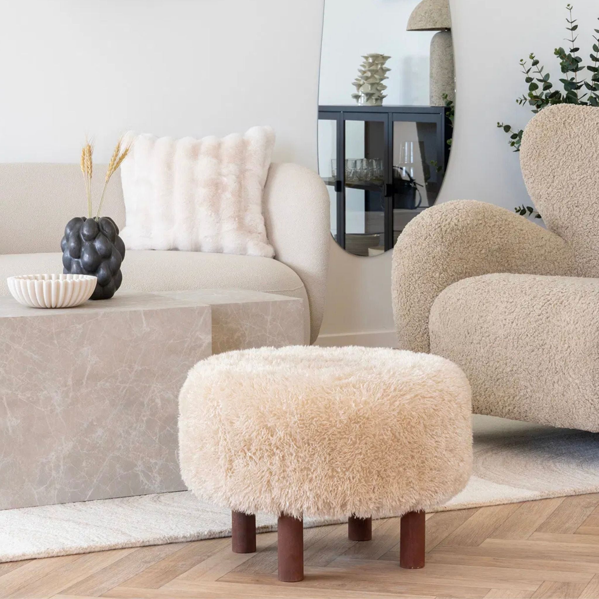 Materiale: Stof (imiteret pels), Krydsfiner, fyrretræ, skum
