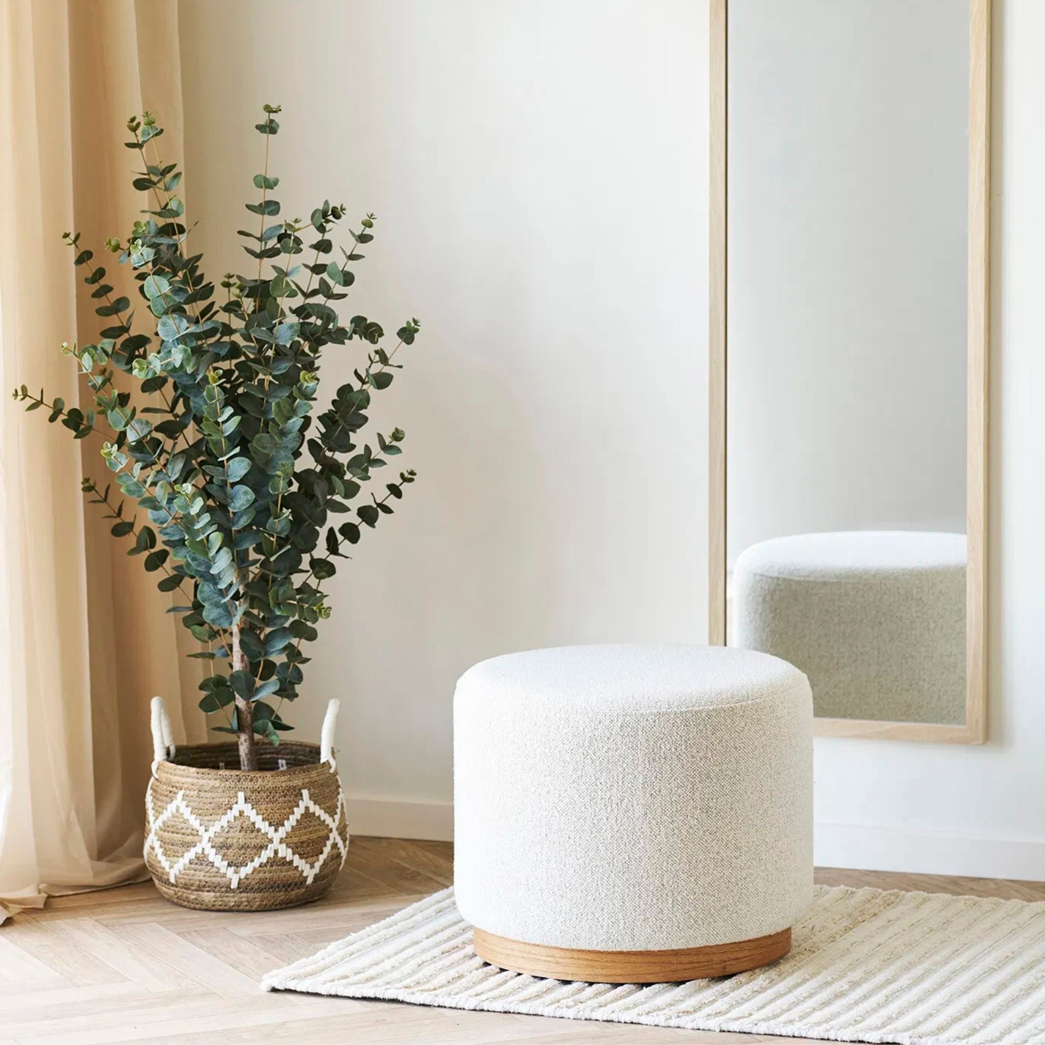 Denne sandfarvet Daisy puf tilføjer varme og stil til dit hjem. Den bløde overflade gør den behagelig at sidde på, mens det enkle, tidløse design passer perfekt ind i enhver indretning som både dekorativ detalje og praktisk siddeplads.