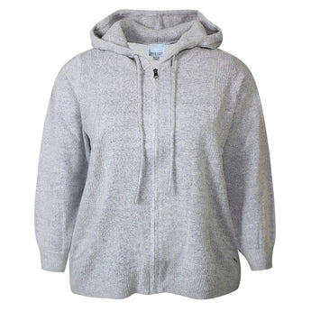En blød strikket cardigan med et sporty twist – designet med gennemgående lynlås og en lun hætte. Den afslappede pasform og ribkanter ved ærmer og bund giver både komfort og holder faconen flot, hvilket gør den ideel til hverdagsbrug.