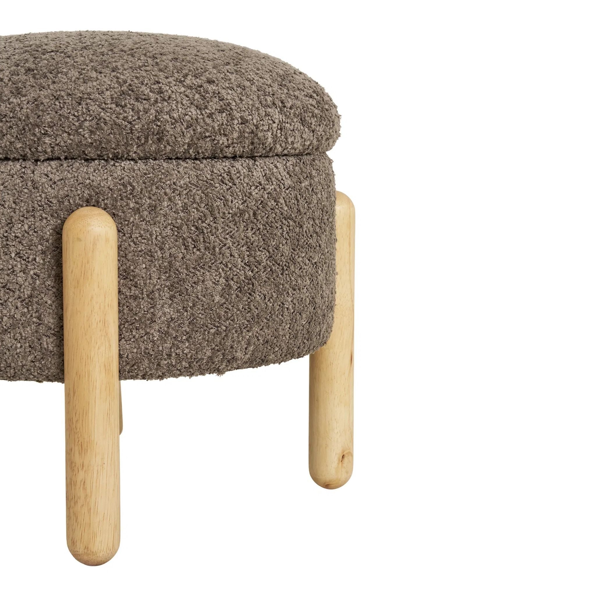 Medas puffen på træben med opbevaring kombinerer komfort og funktionalitet. Den bløde overflade gør den behagelig at sidde på, mens den skjulte opbevaringsplads holder dit hjem ryddeligt og stilfuldt.