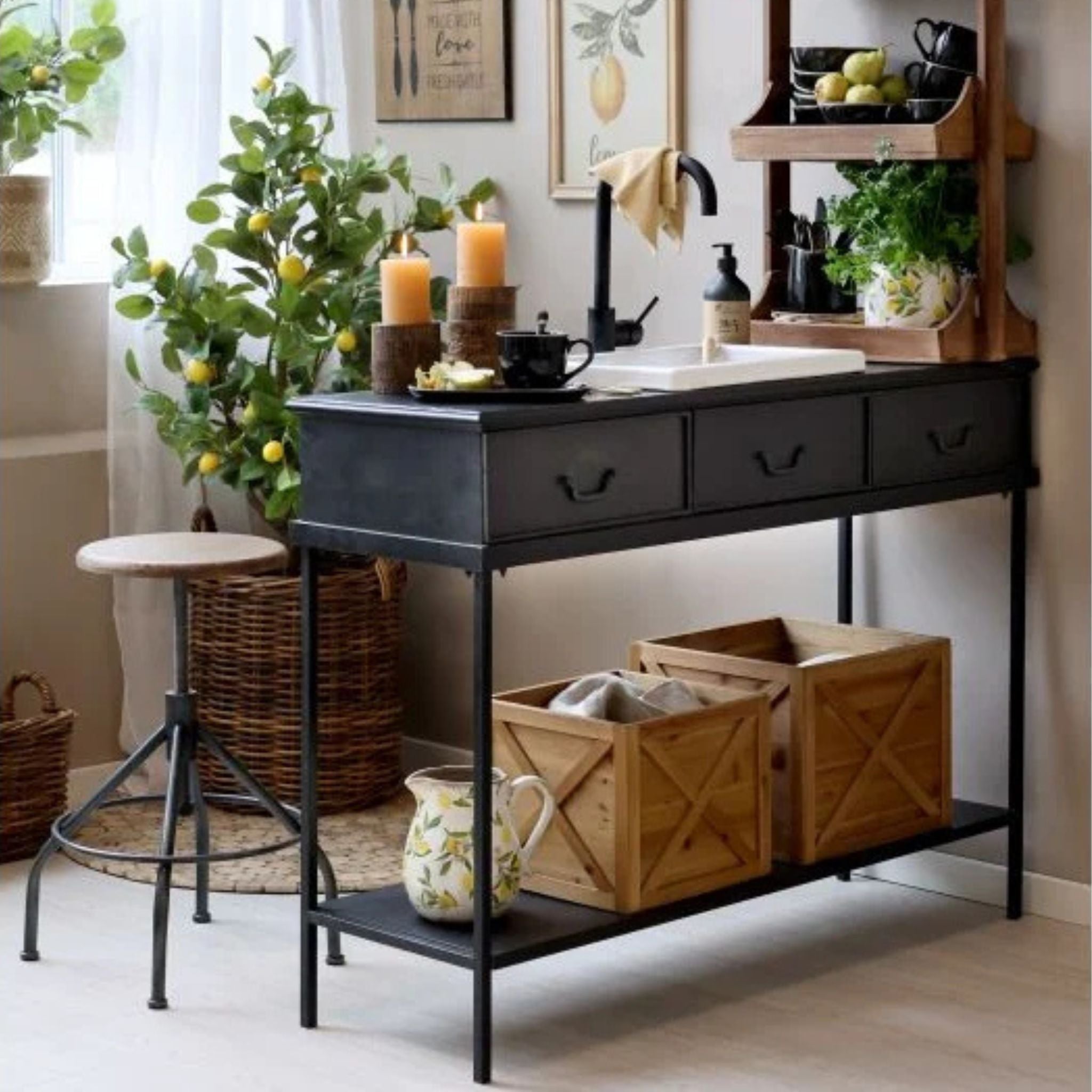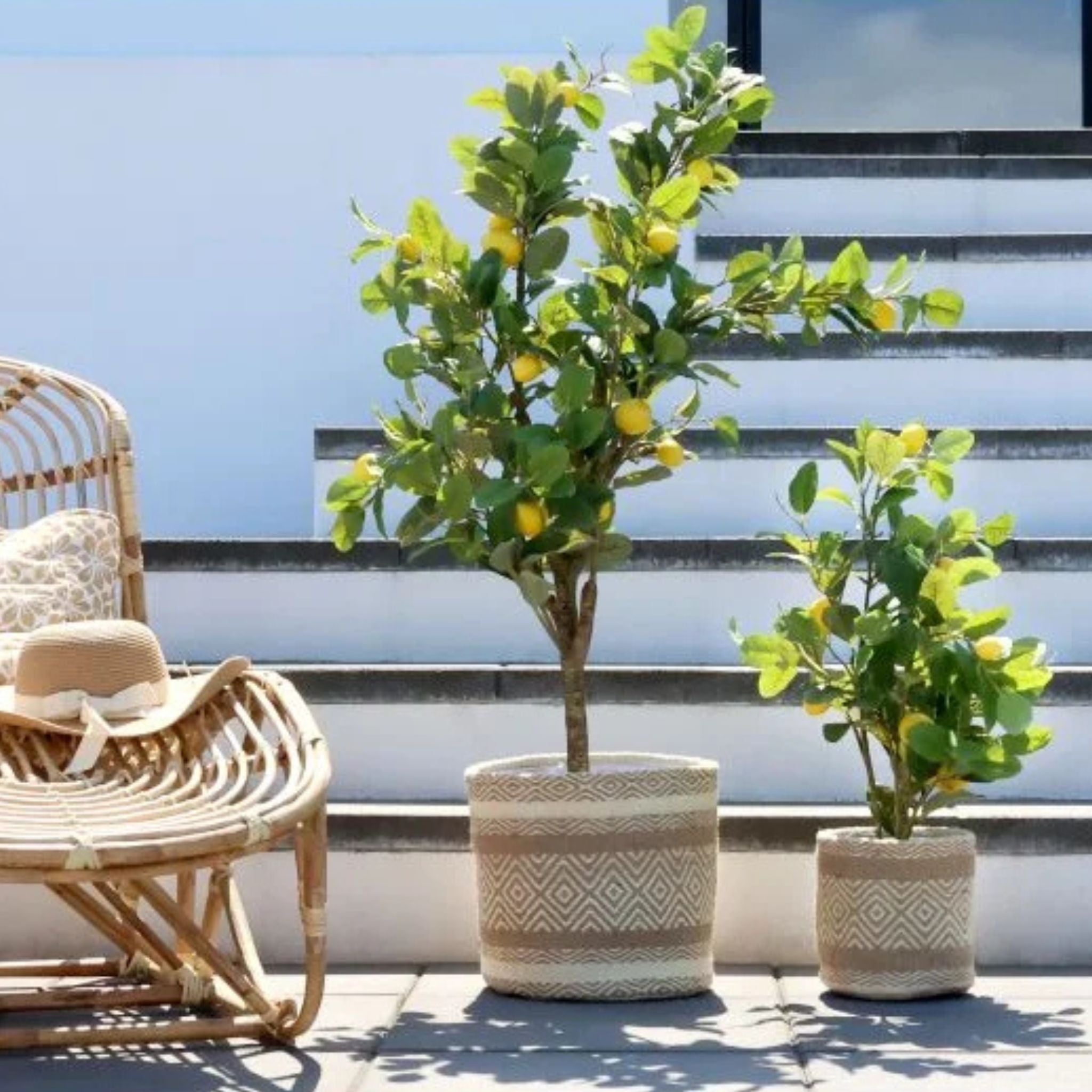 Frisk op i hjemmet med et naturtro citrontræ, komplet med elegant potte – perfekt til at skabe liv og farve året rundt.