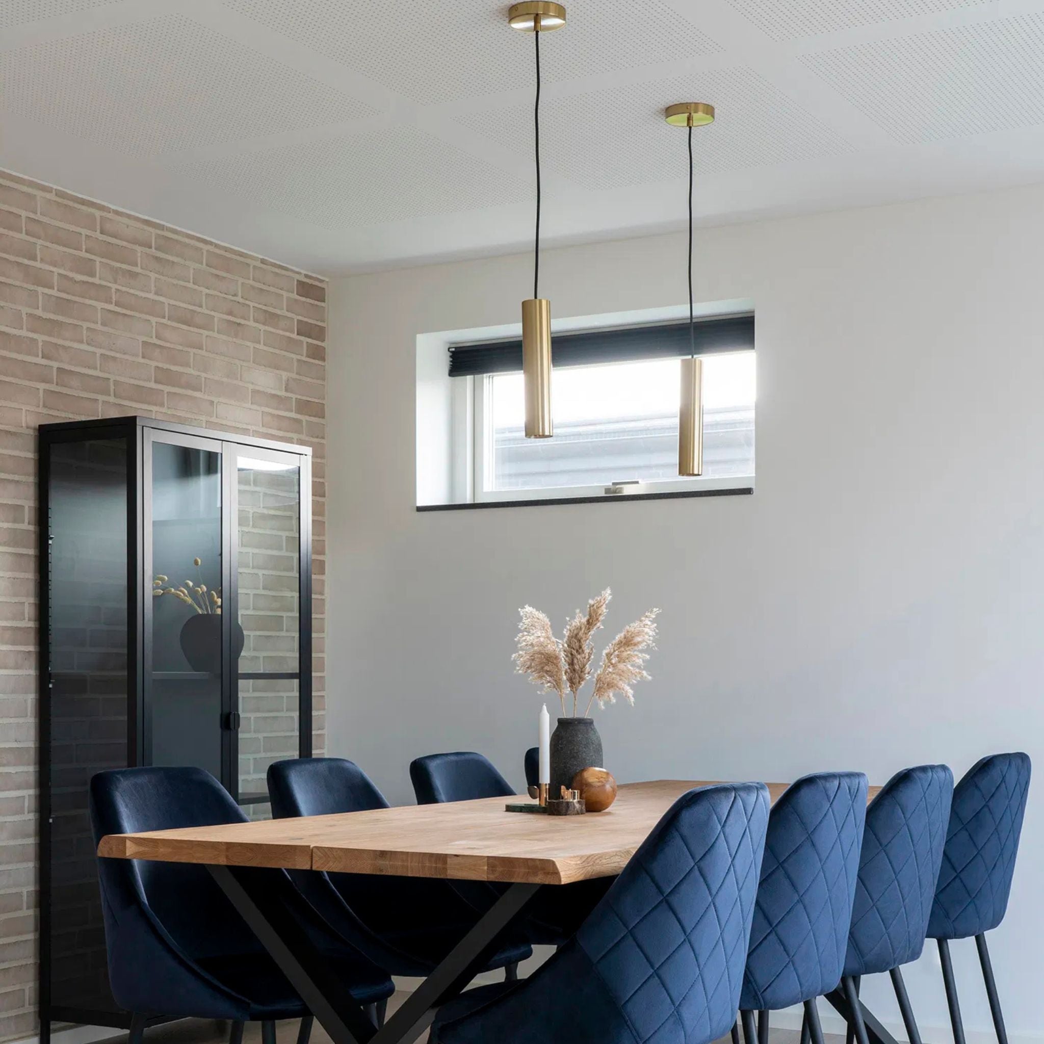 Paris pendellampen i sort og messing kombinerer tidløs elegance med moderne enkelhed. Den spreder et blødt, varmt lys, der skaber hyggelig stemning over spisebordet, i stuen eller entréen, samtidig med at dens stilrene design giver rummet et elegant og indbydende udtryk.