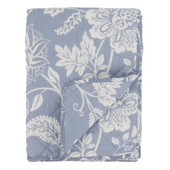 Plaid m. blomstermotiv Blå/Hvid - Chic Antique