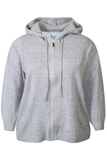 En blød strikket cardigan med et sporty twist – designet med gennemgående lynlås og en lun hætte. Den afslappede pasform og ribkanter ved ærmer og bund giver både komfort og holder faconen flot, hvilket gør den ideel til hverdagsbrug.