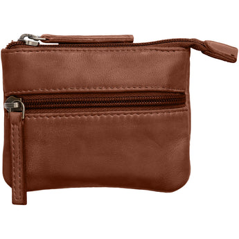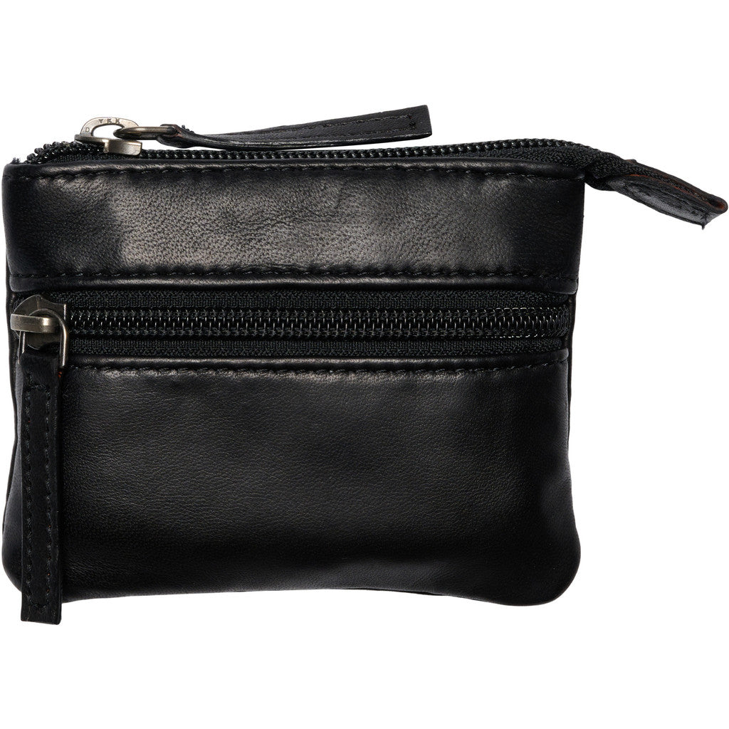 Lille pung i blødt skind med god plads til kort og sedler. Har to rum, som begge lukkes med lynlås.